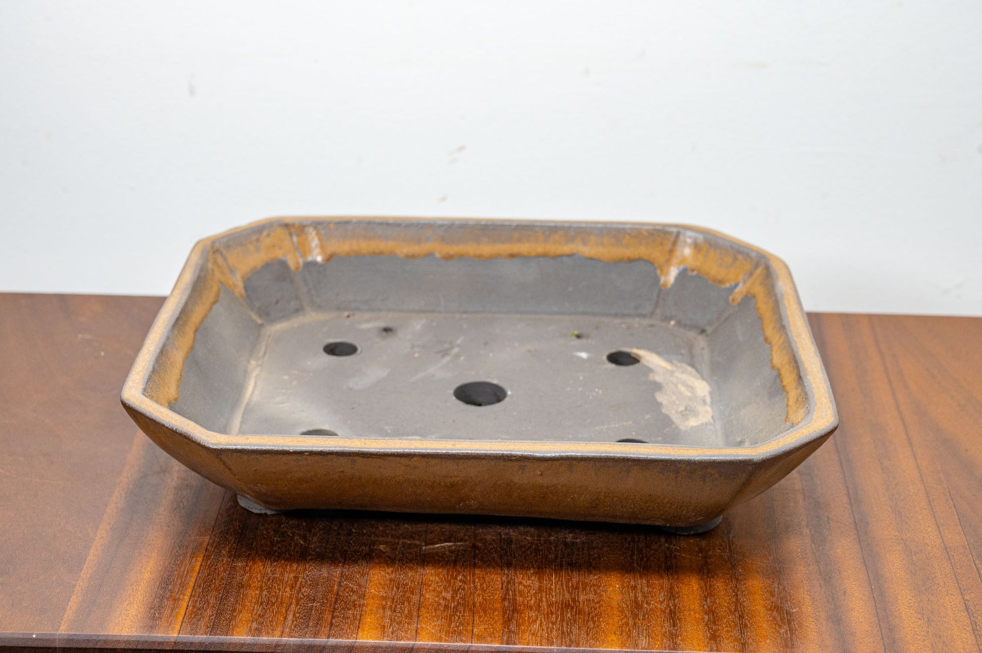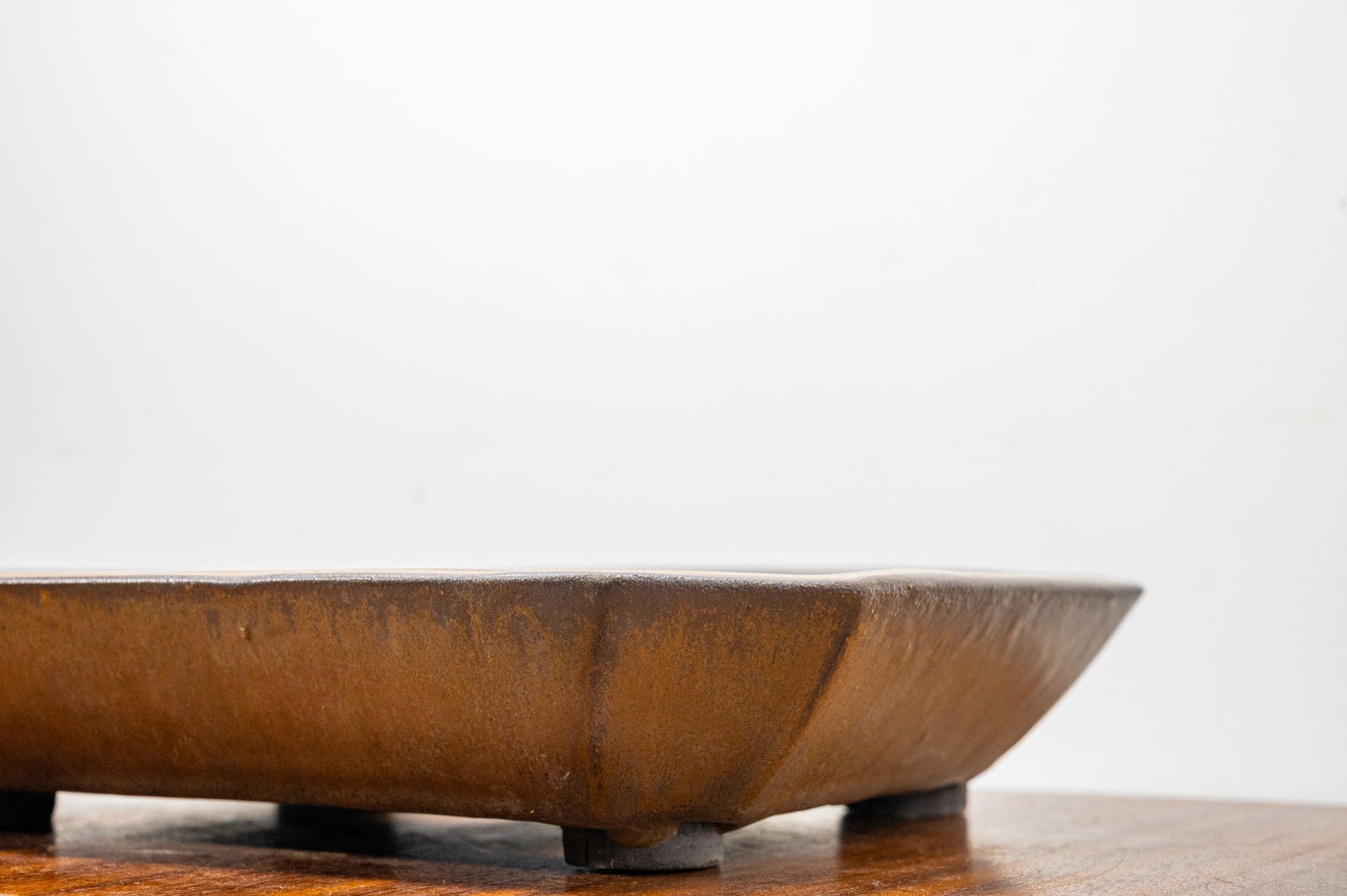 Built in Black Clay -28cm Rectangular Dish - Venus Brown Glaze - by Zero Bonsai
